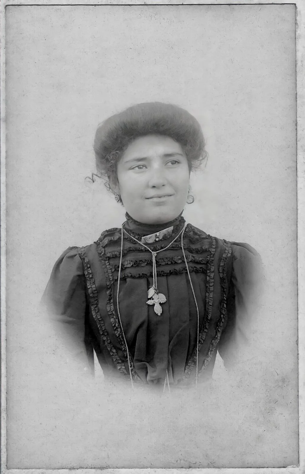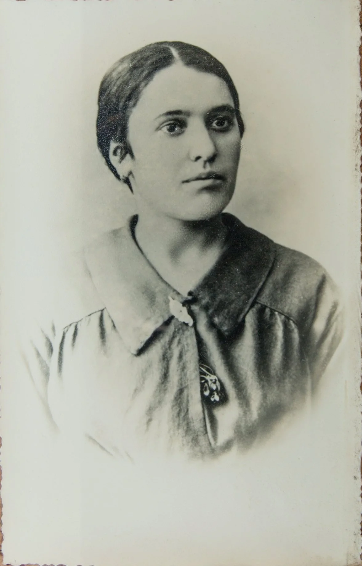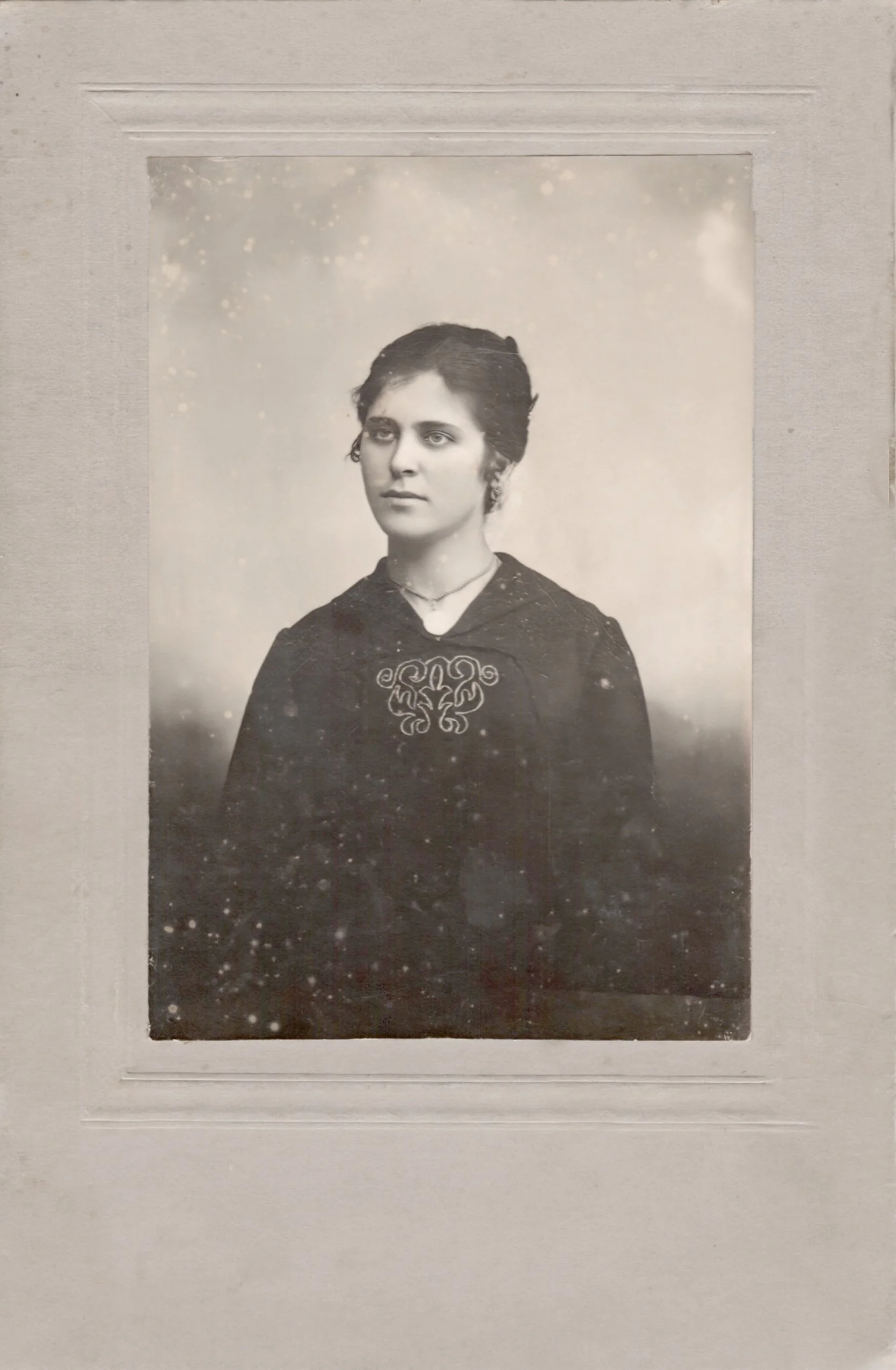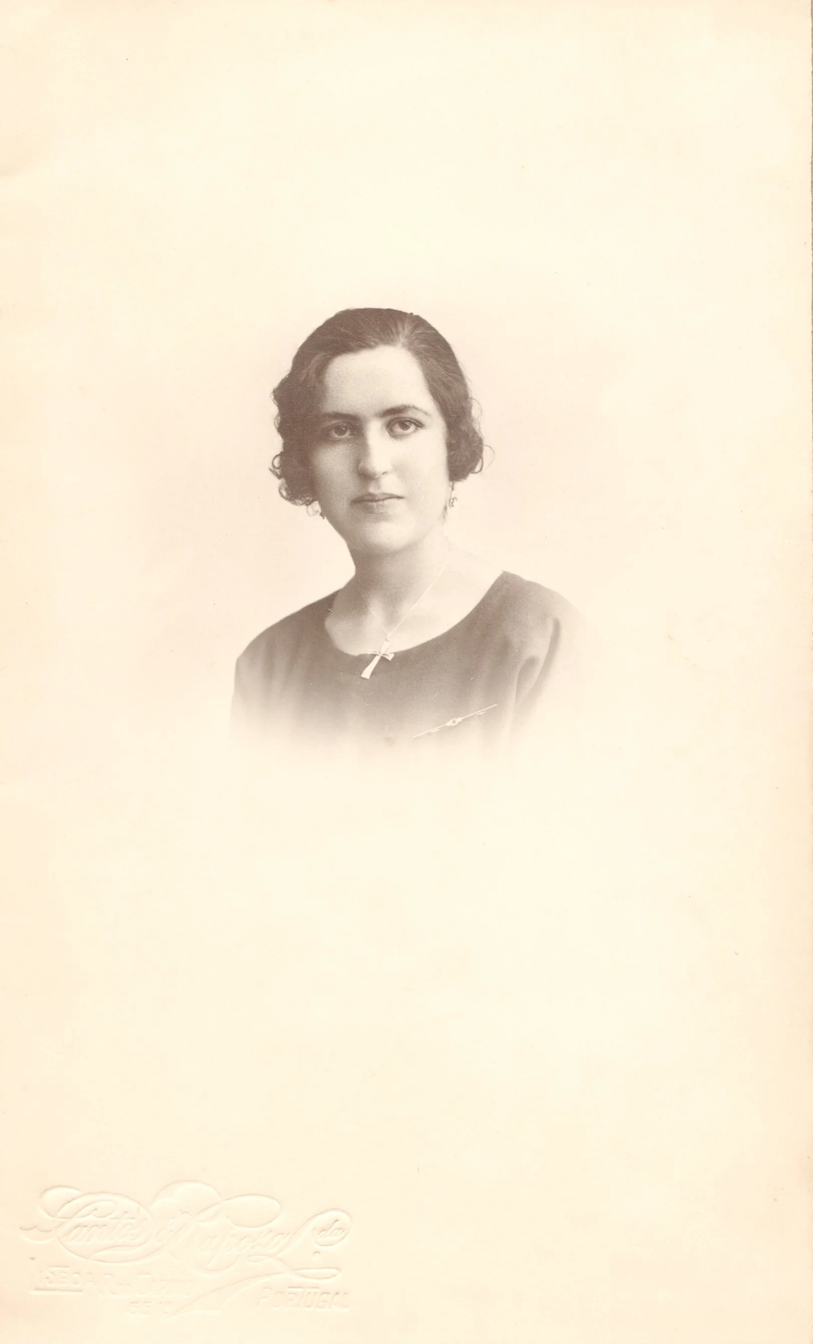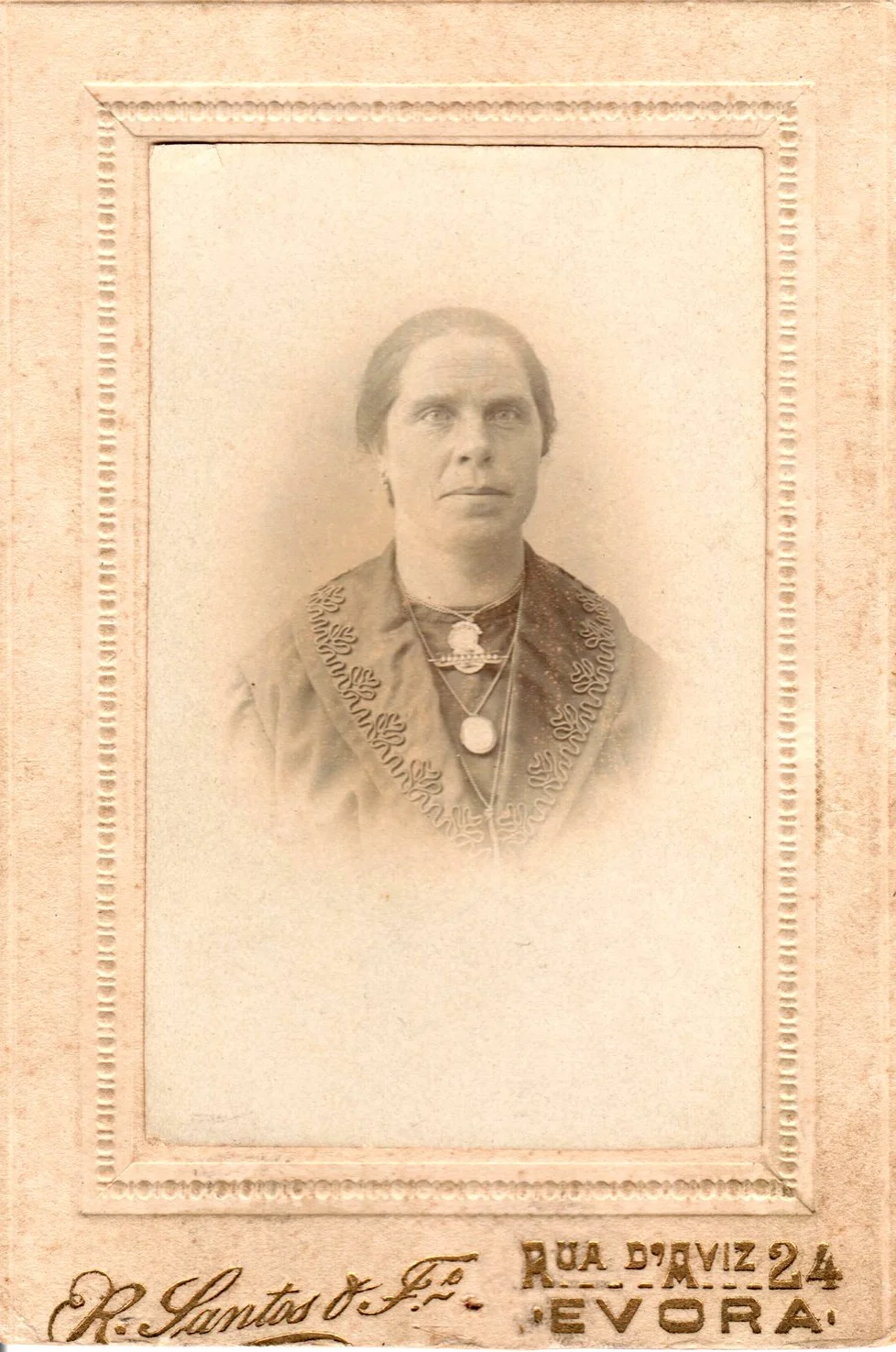 Lucinda Sureda. Rolheira. Filha de Vincent Sureda e Maria Gruart de Cassà de la Selva. Nascida em Azaruja. Mãe de Pepe Duque e Maria Duque Ferrão. Digitalizado da coleção privada Maria Albertina Ferrão.