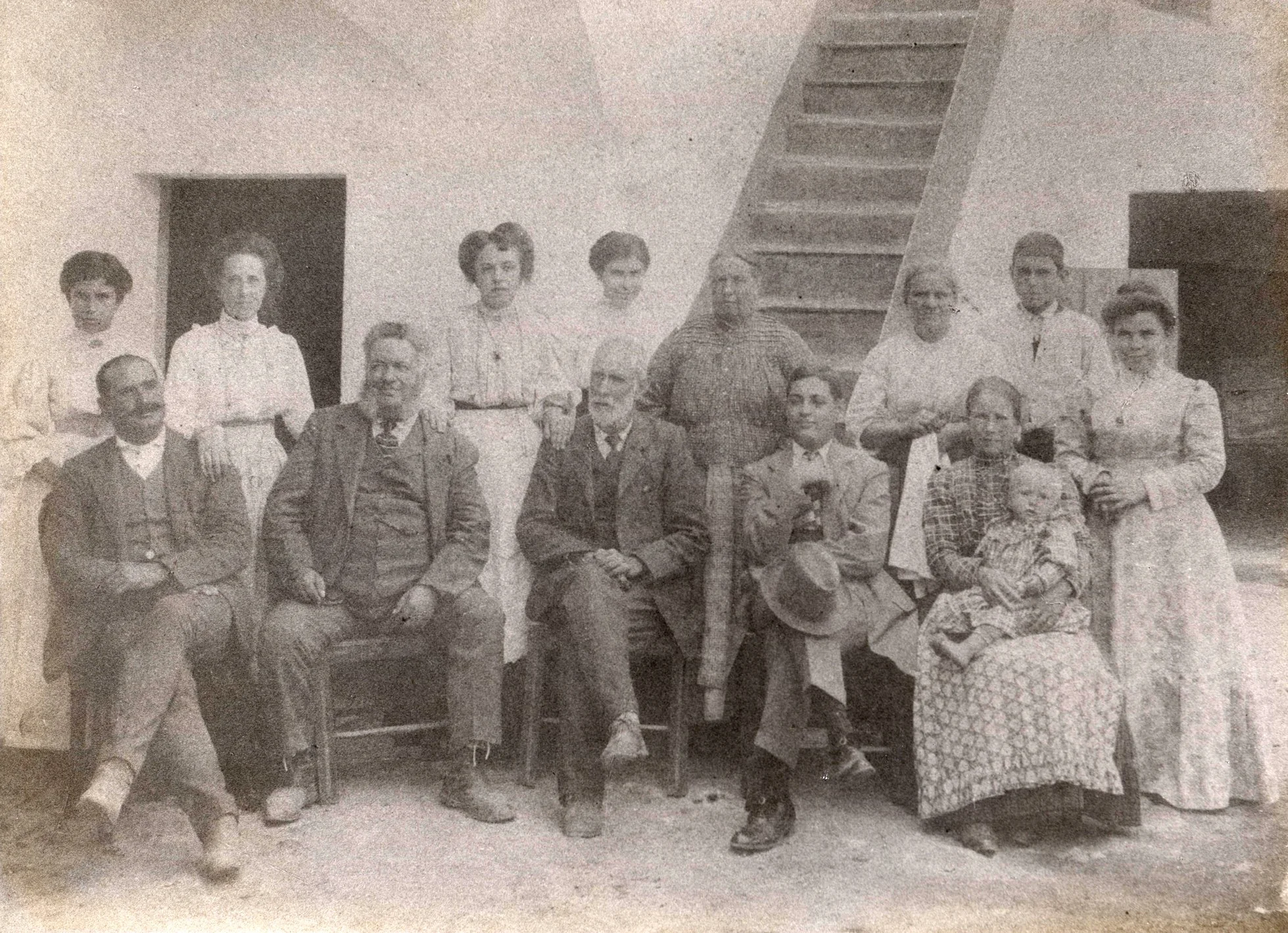 Família Camps. Sentado à esquerda: Jeronimo José Correia de Mira Amaral 1878 - 1950, sua esposa com a mão no seu ombro: Teresa Camps Morra 1888 - 1958. Júlio Ryder Camps (com o chapéu no joelho). Coleção Maria Manuela Amaral e filhos.