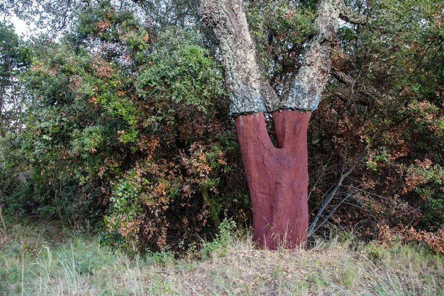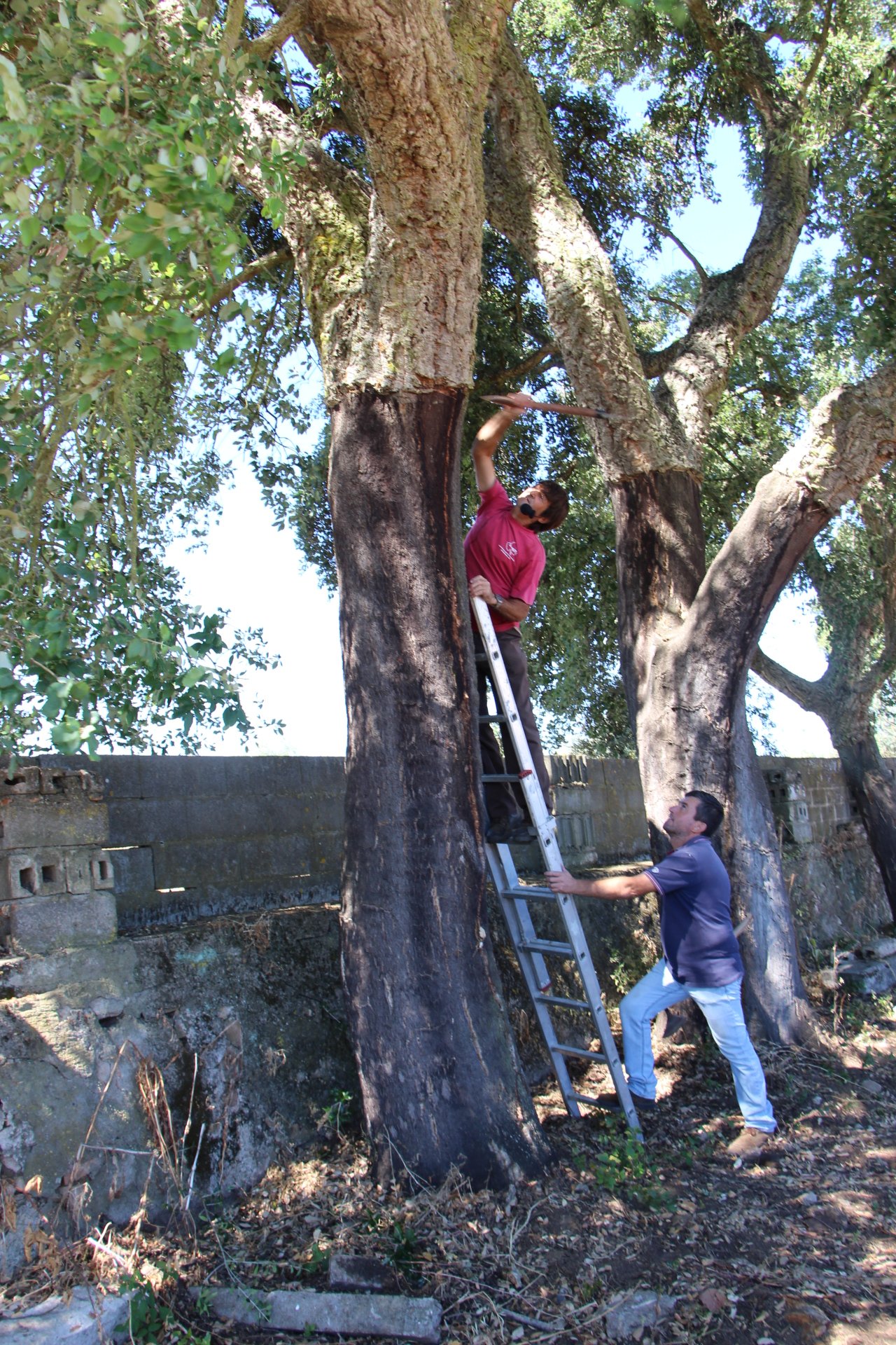 Em 2024 na 2° edição do Festival Suro tiradores portugueses e catalães tiram a cortiça dos sobreiros da Fábrica e partilham gestos e experiências. Fotografias Ignacio Garcia Pereda