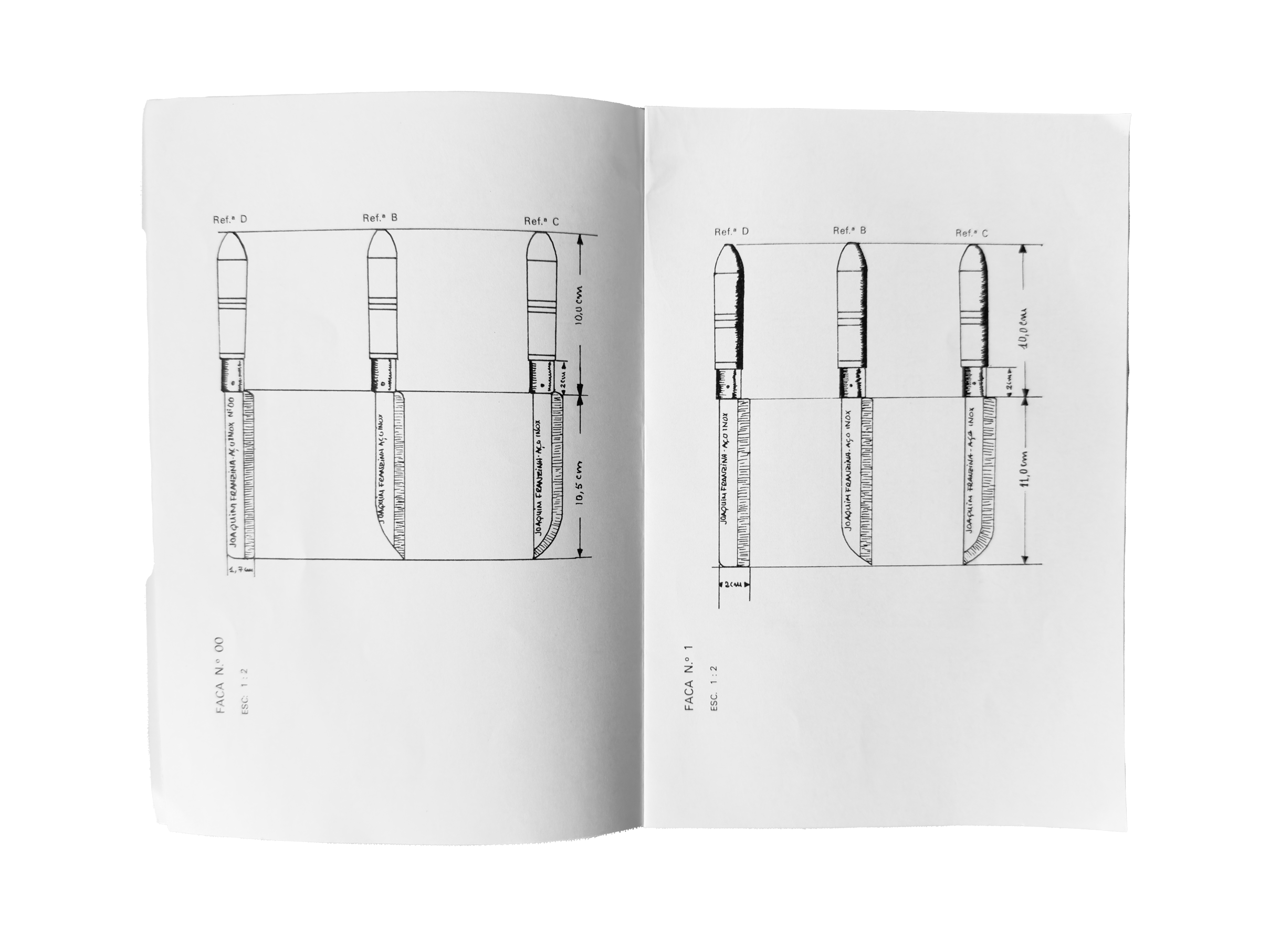 Conjunto constituído por 13 facas de uso doméstico, produzidas pela Fábrica Joaquim Franzina.