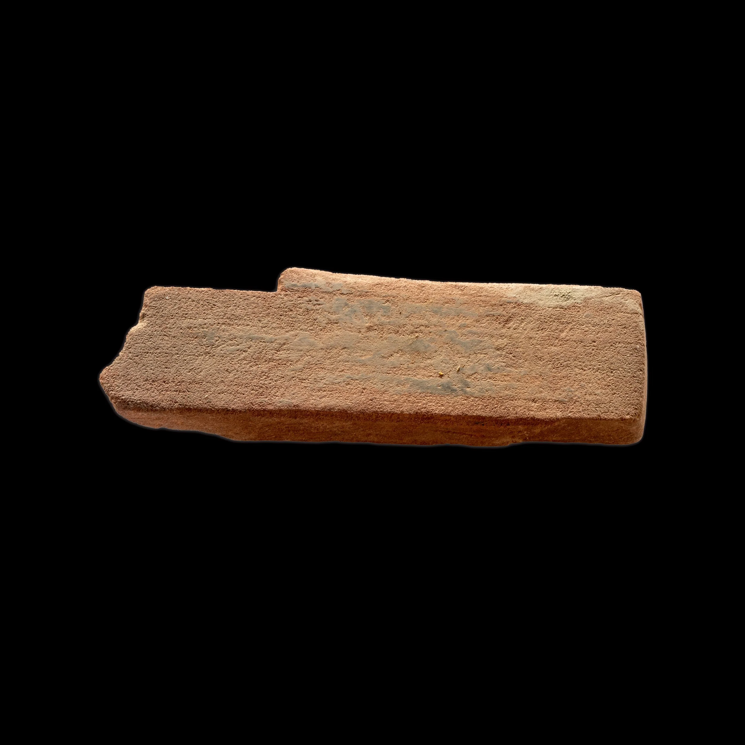 1. AMOLADOR Ferramenta individual utilizada no tratamento da cortiça. Trata-se de uma pedra vermelha de arenito natural, com 8 cm de espessura e comprimento equivalente ao da lâmina da faca. Cada operário possuía a sua pedra para afiar as respetivas facas. Nesta fábrica existiam ainda outros sistemas de afiação: uma roda de amolar a pedal situada no exterior (ainda no local) e outra elétrica, instalada no barracão coberto, posteriormente retirada. Inv. CFC0001.25DFC.PA.A