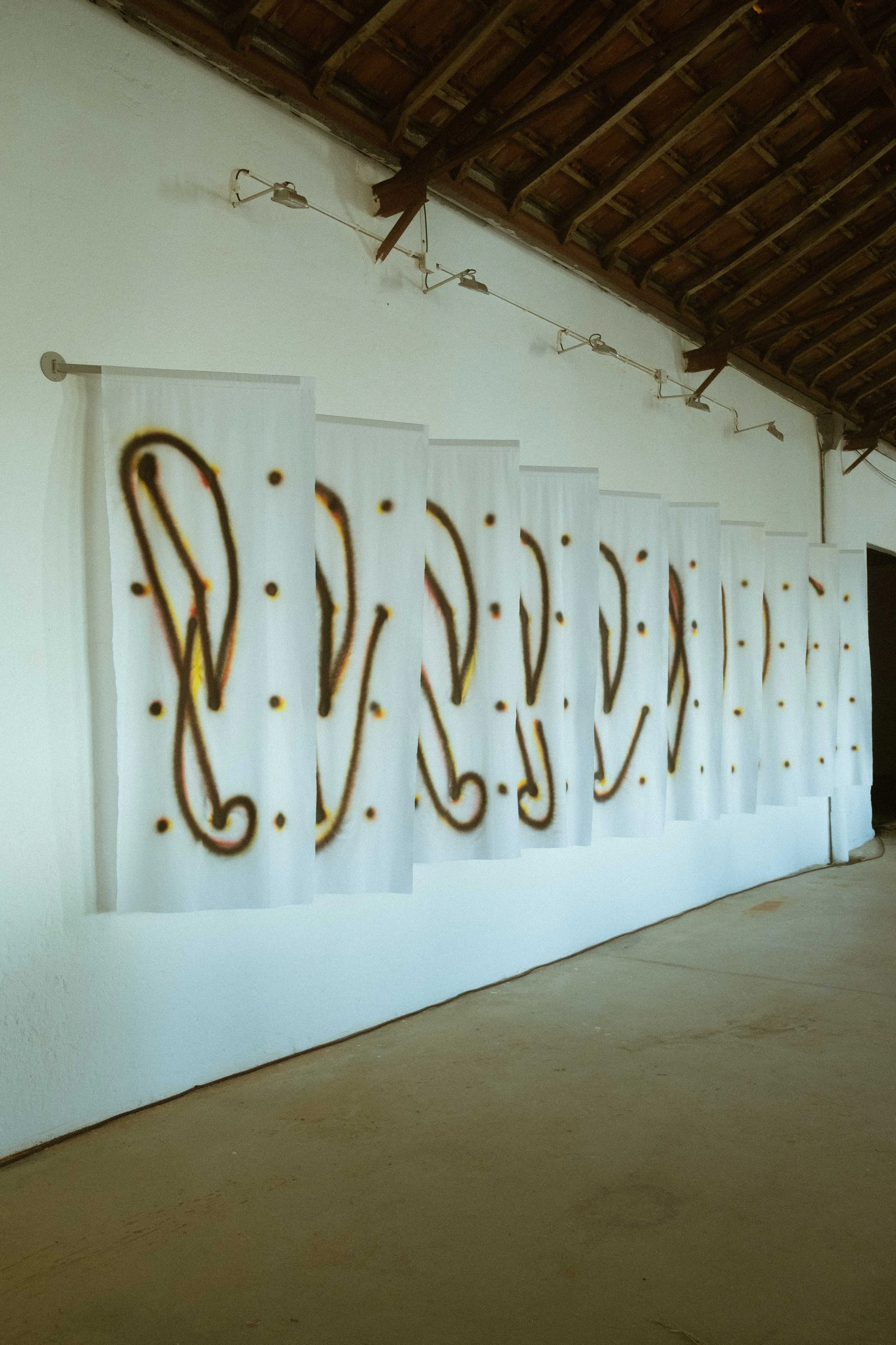 Utilizei nesta peça uma forma de escrita de sequência de números que iniciei há mais de 30 anos e que por vezes retomo: a linha resulta do movimento dos dedos necessário para marcar essa sucessão. Uma marca digital no campo digital...!